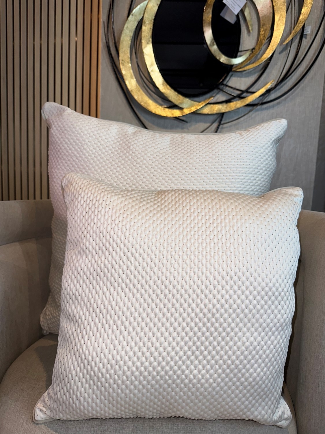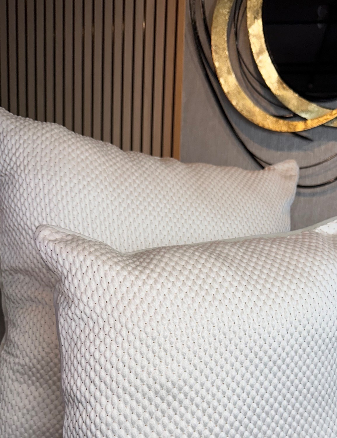 Descripción: Cojín decorativo importado de alta gama con acabados exclusivos de finos textiles