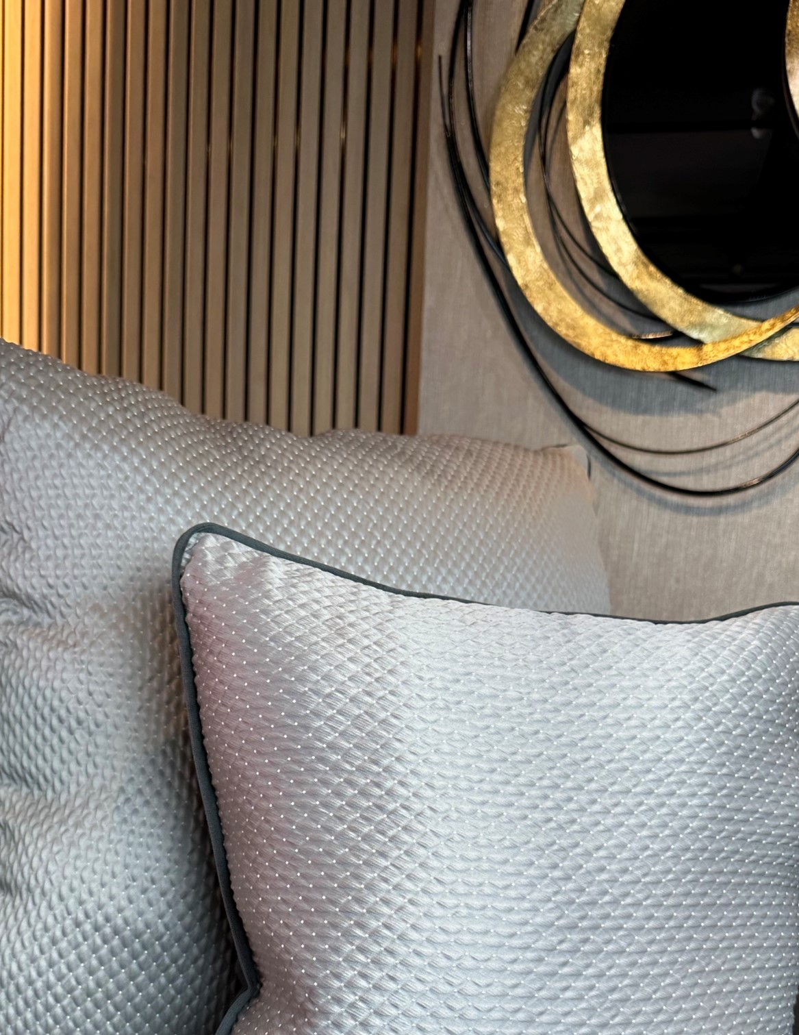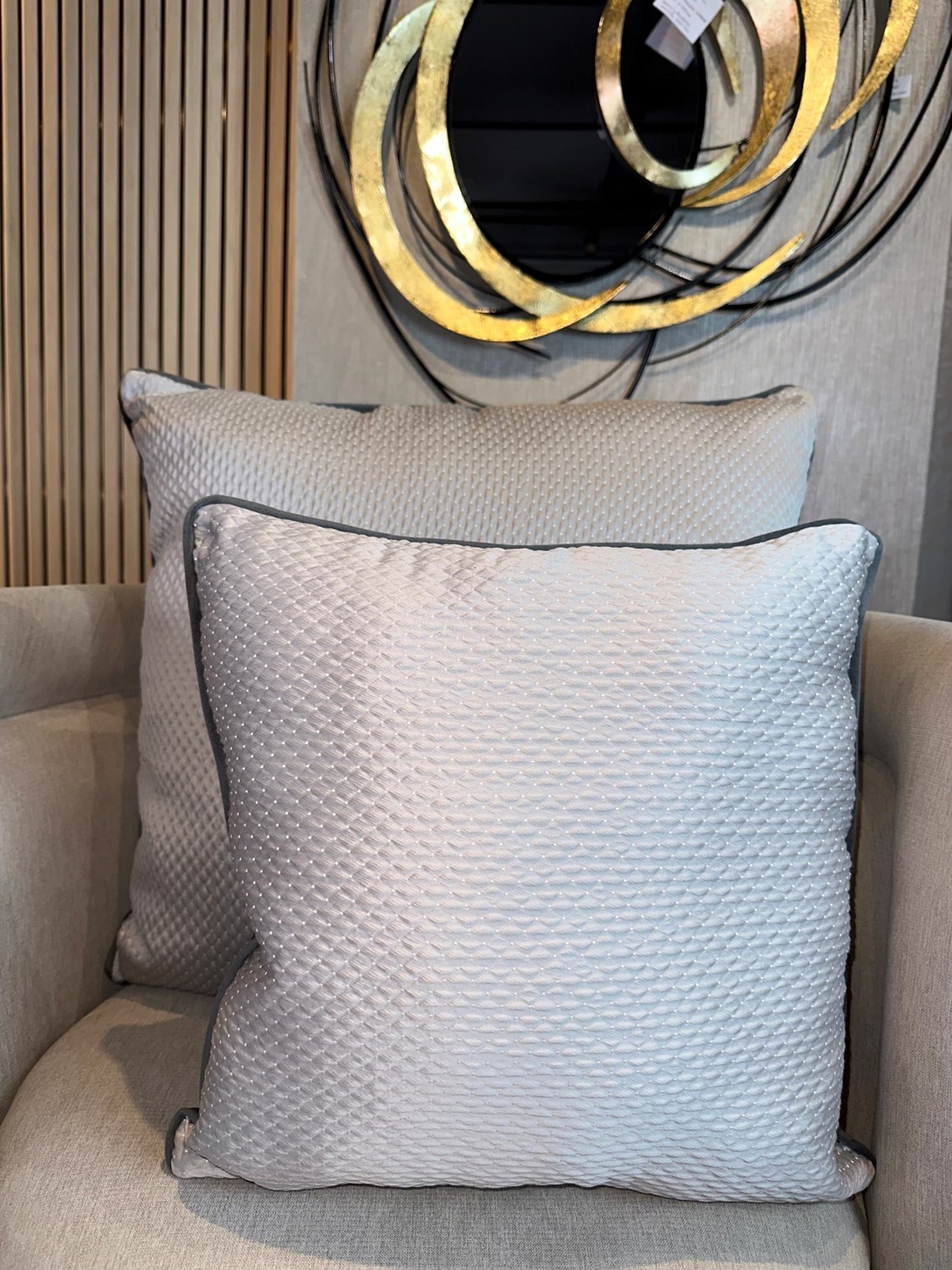 Descripción: Cojín decorativo importado de alta gama con acabados exclusivos de finos textiles