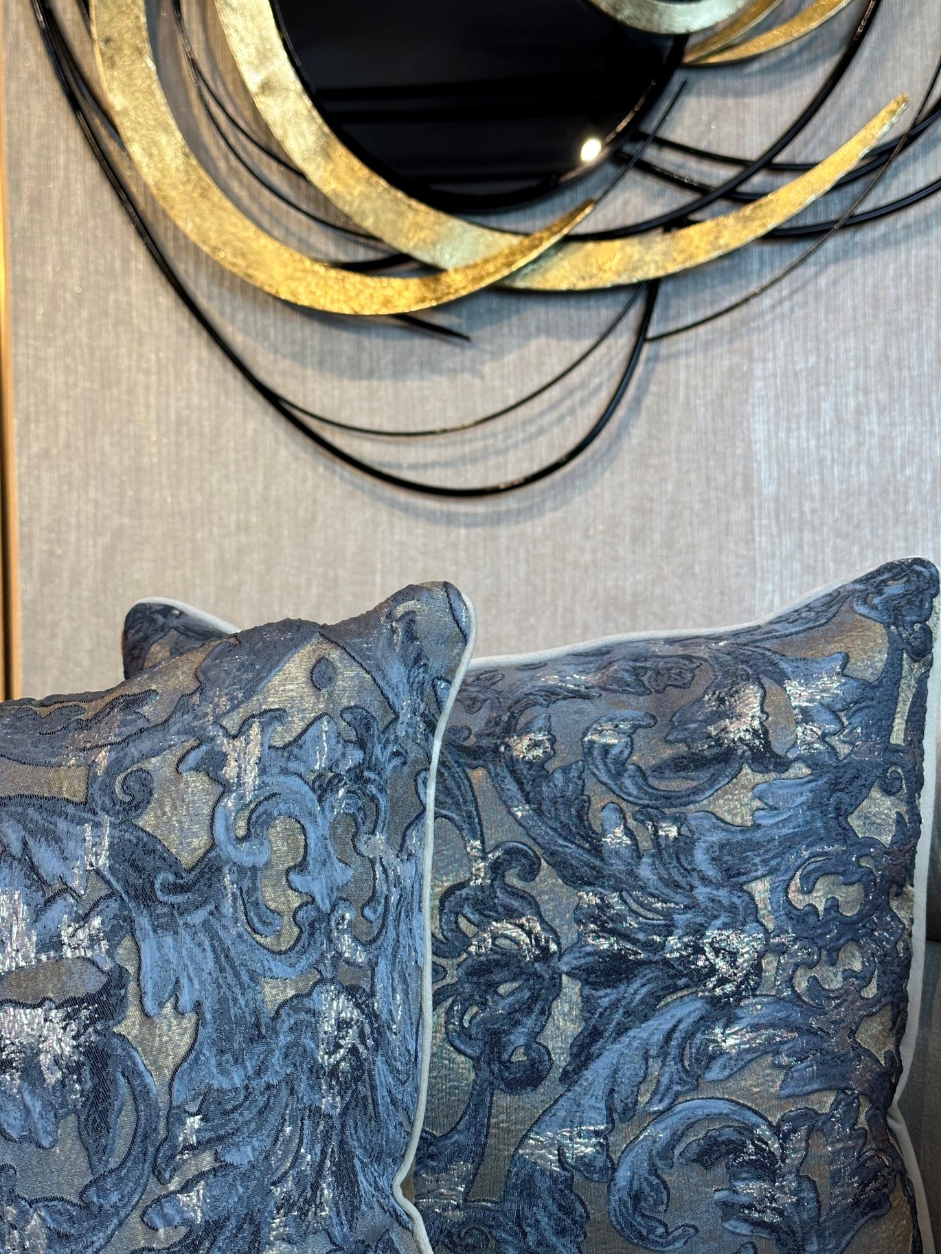 Descripción: Cojín decorativo importado de alta gama con acabados exclusivos de finos textiles