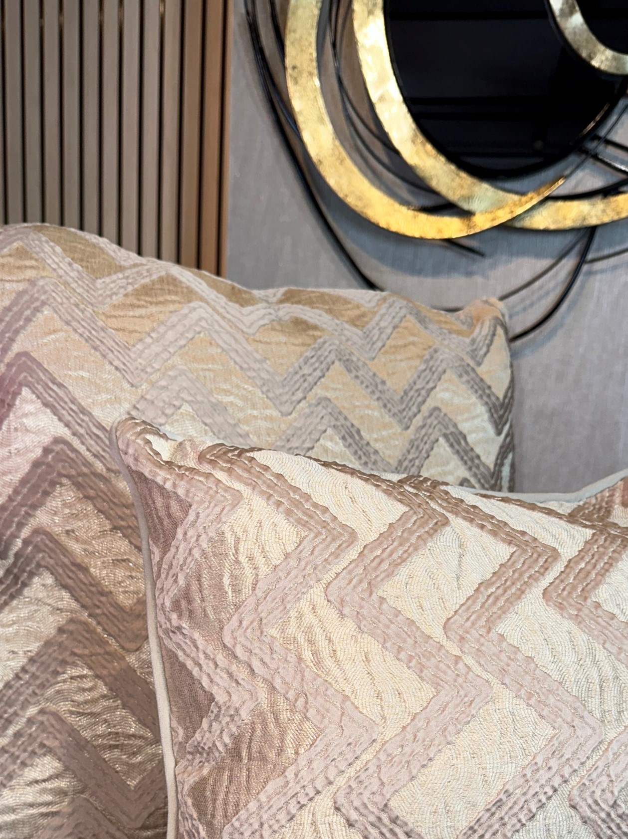 Descripción: Cojín decorativo importado de alta gama con acabados exclusivos de finos textiles