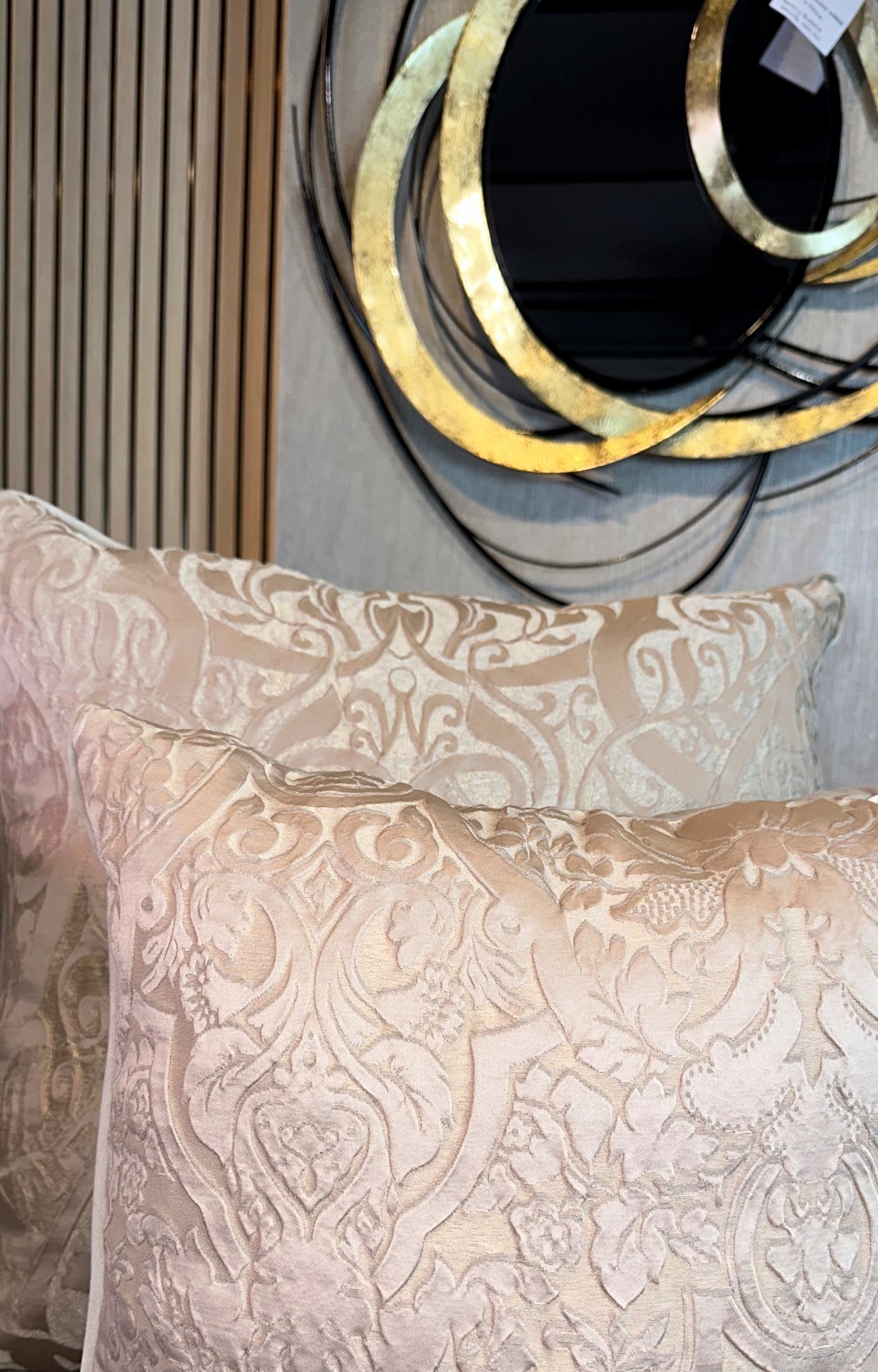 Descripción: Cojín decorativo importado de alta gama con acabados exclusivos de finos textiles
