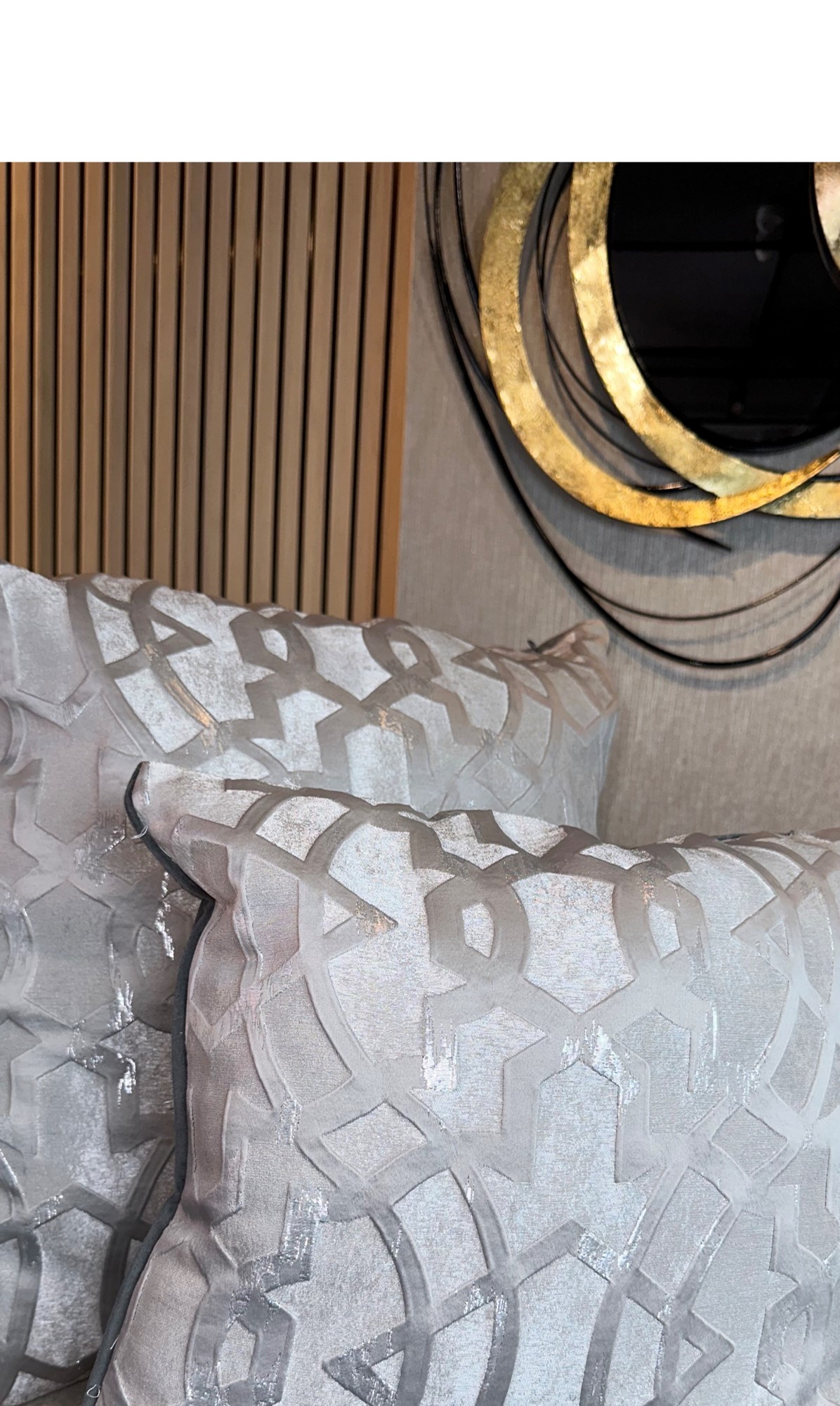 Descripción: Cojín decorativo importado de alta gama con acabados exclusivos de finos textiles
