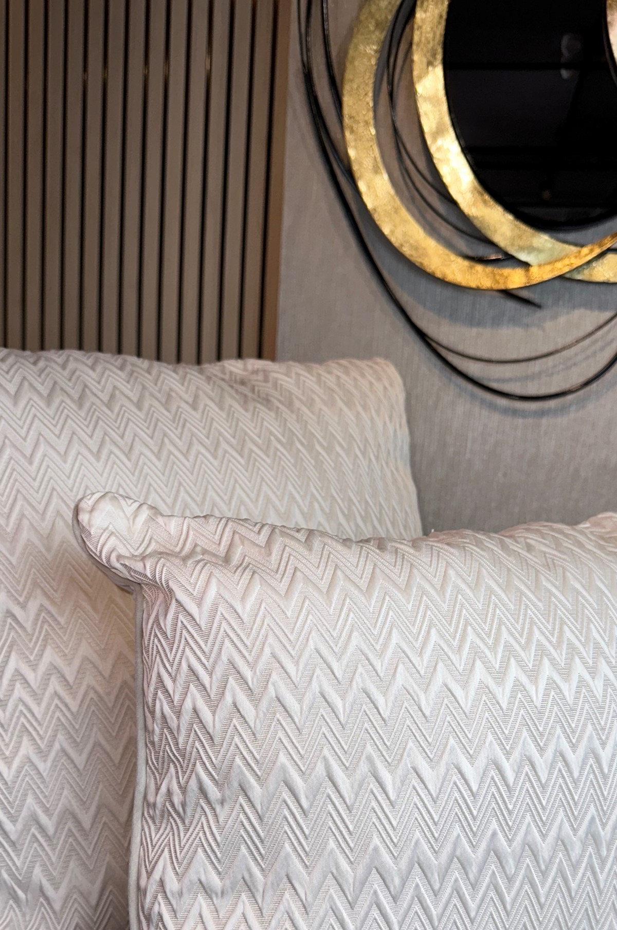 Descripción: Cojín decorativo importado de alta gama con acabados exclusivos de finos textiles