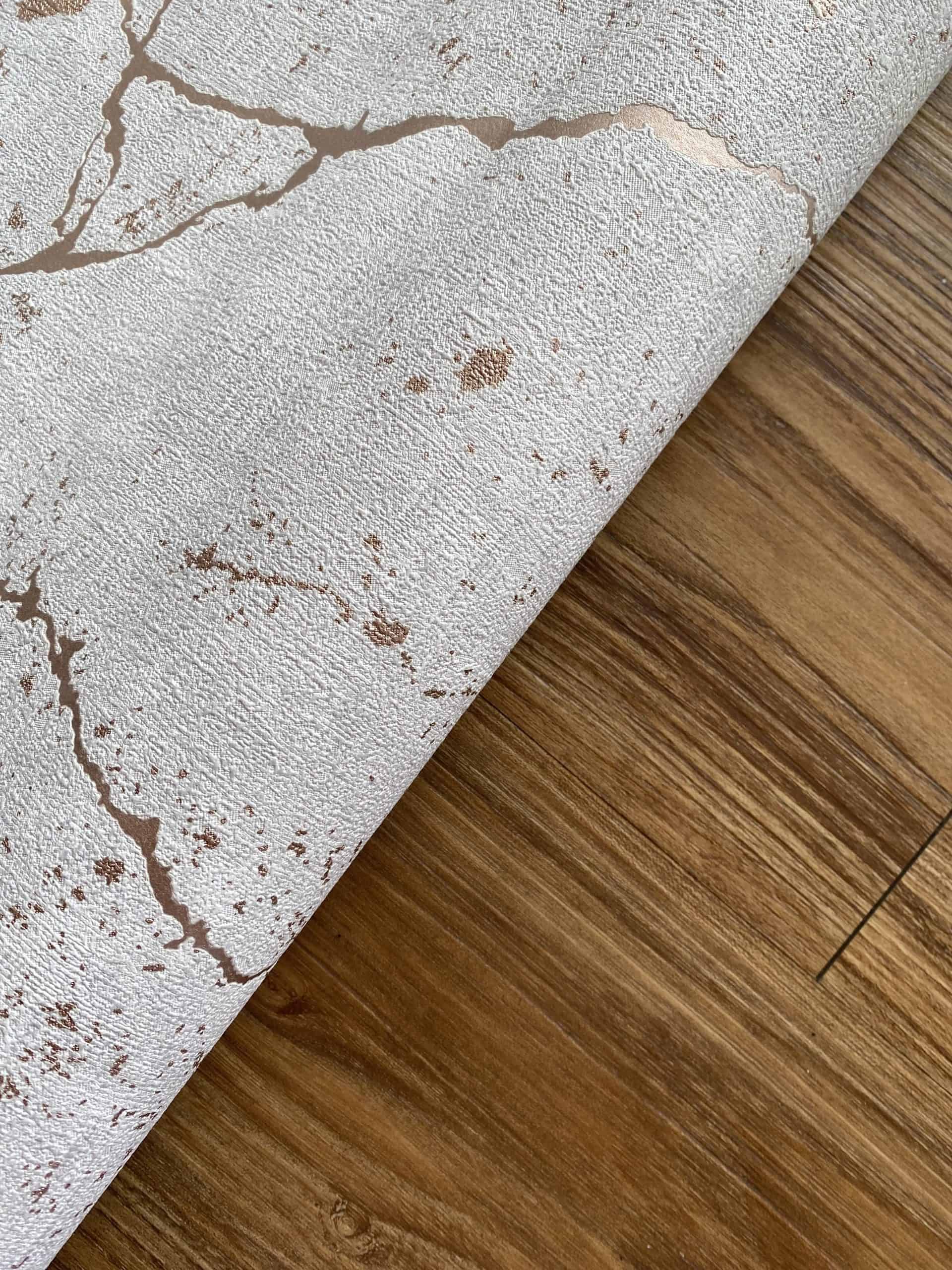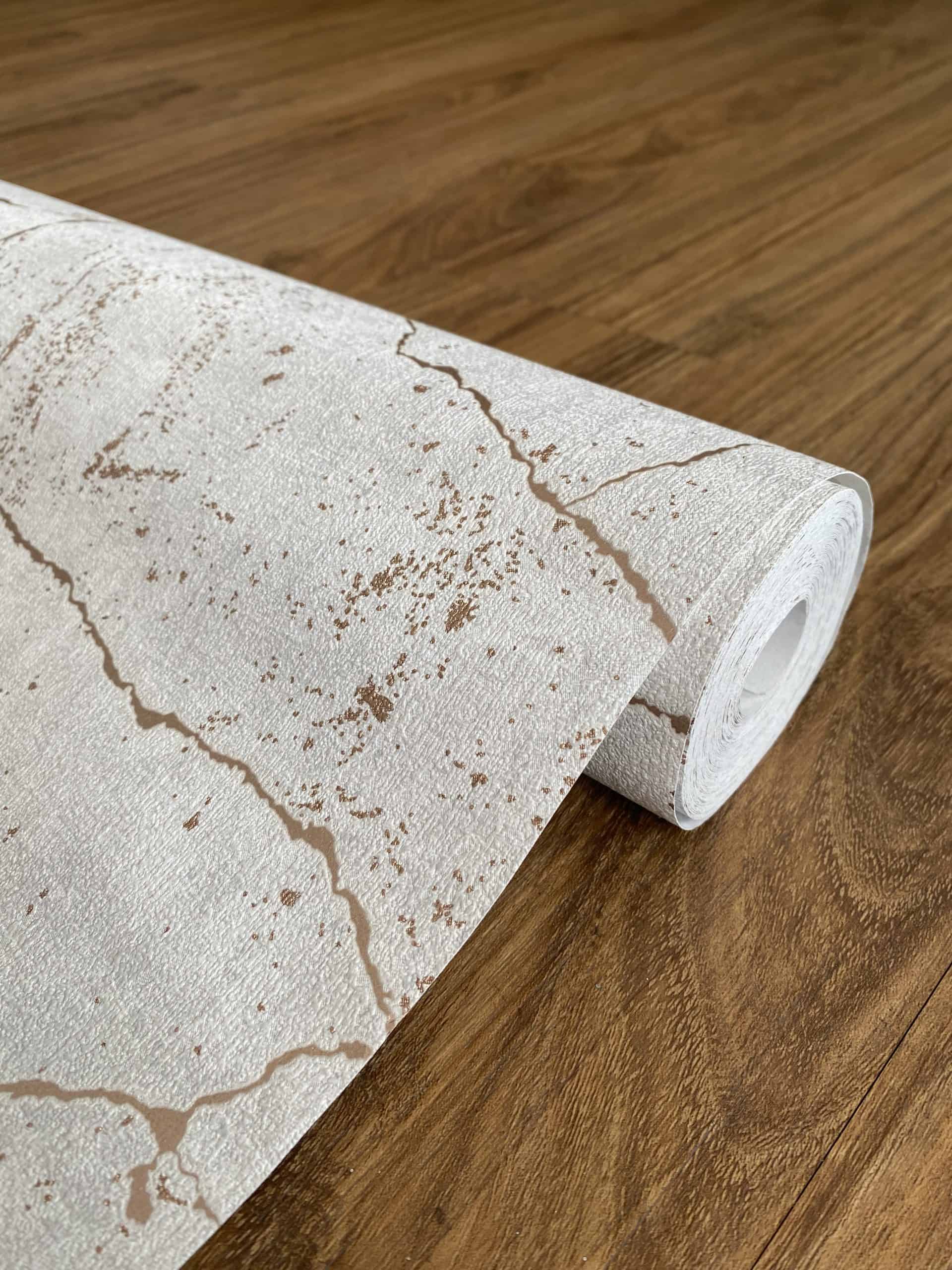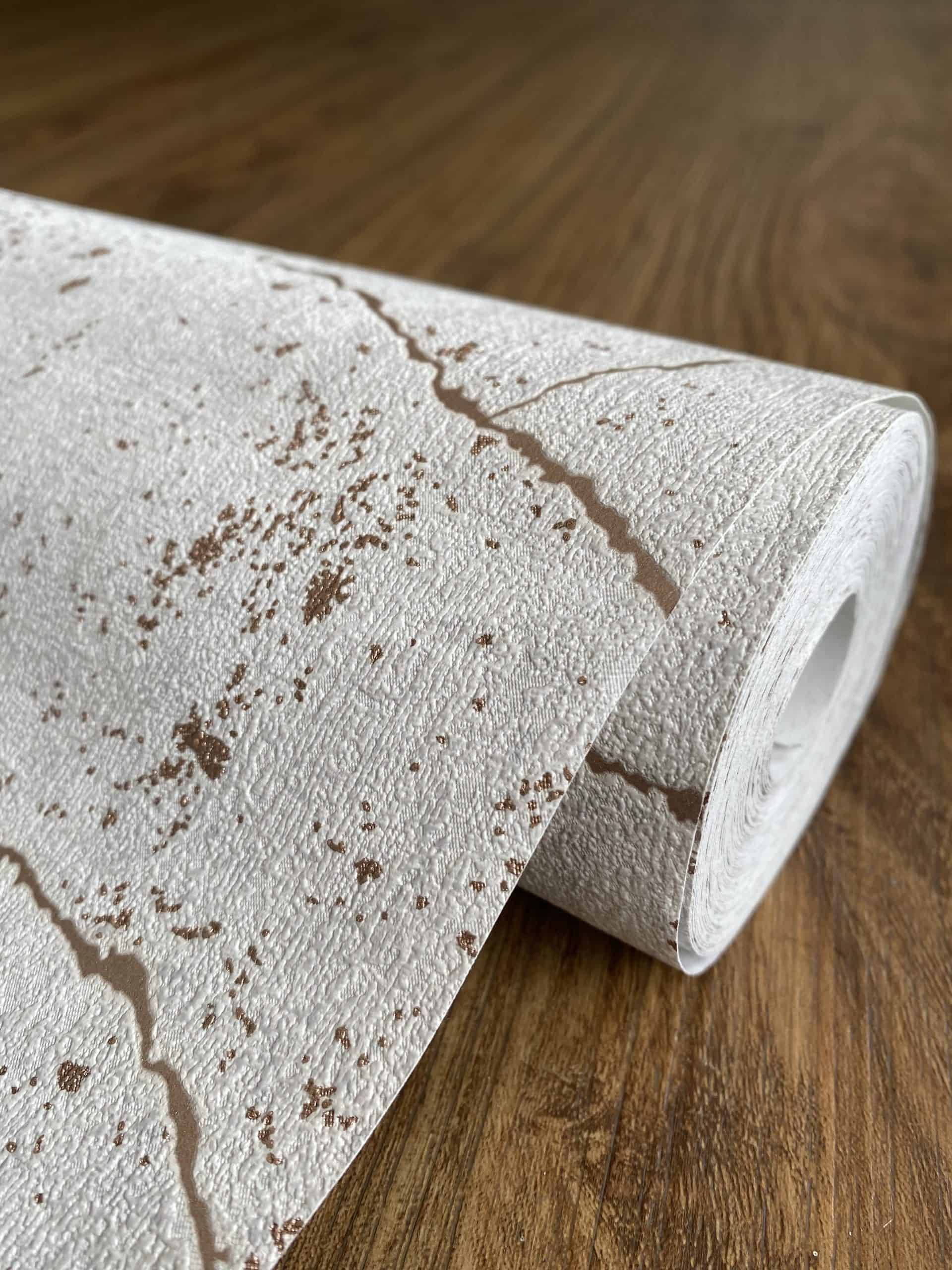 Este elegante papel de colgadura Rose Gold Kintsugi se vería espectacular en cualquier espacio. Los colores
