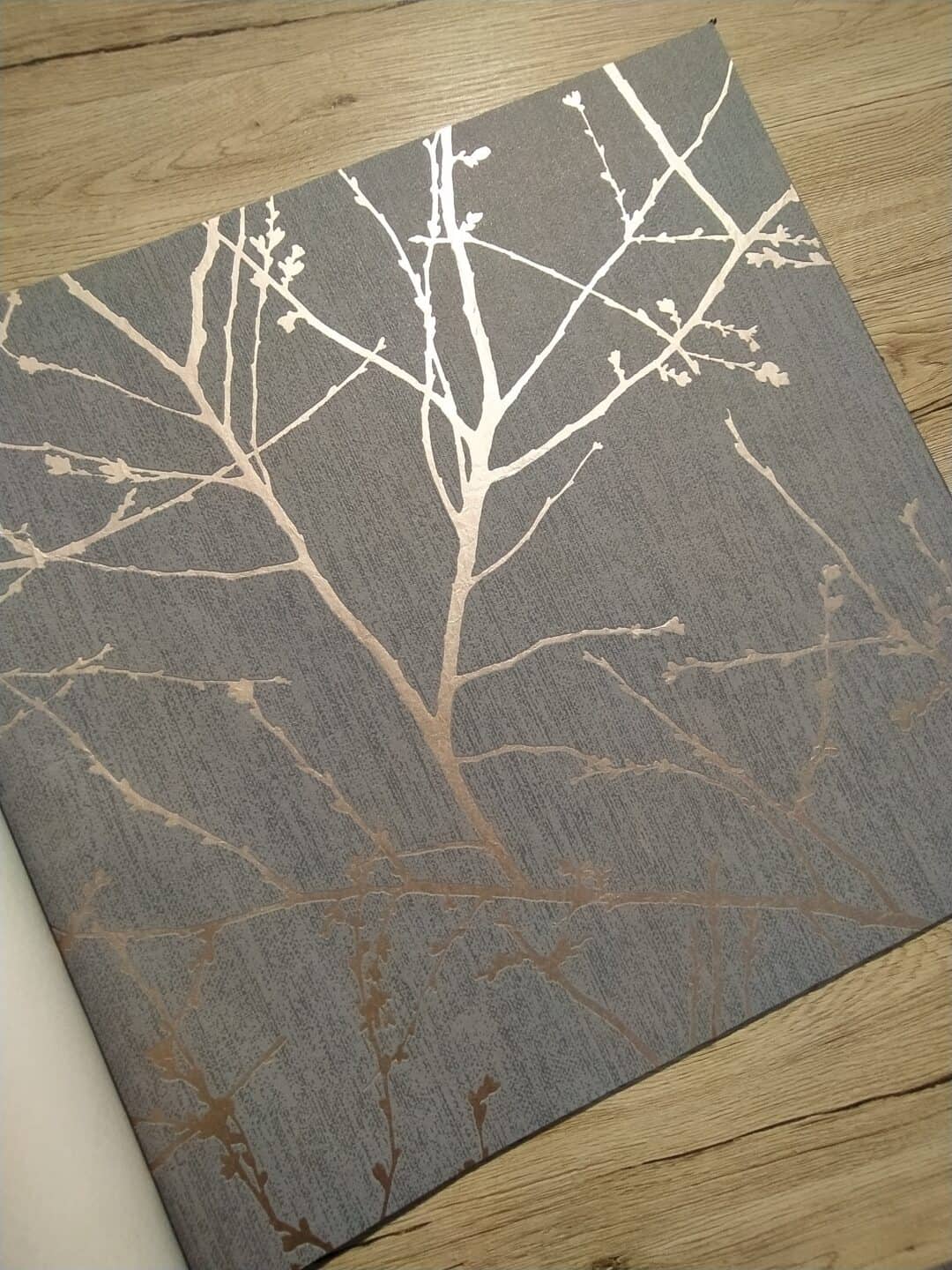 COLOR: FONDO GRIS Y RAMAS ORO ROSA METALIZADO